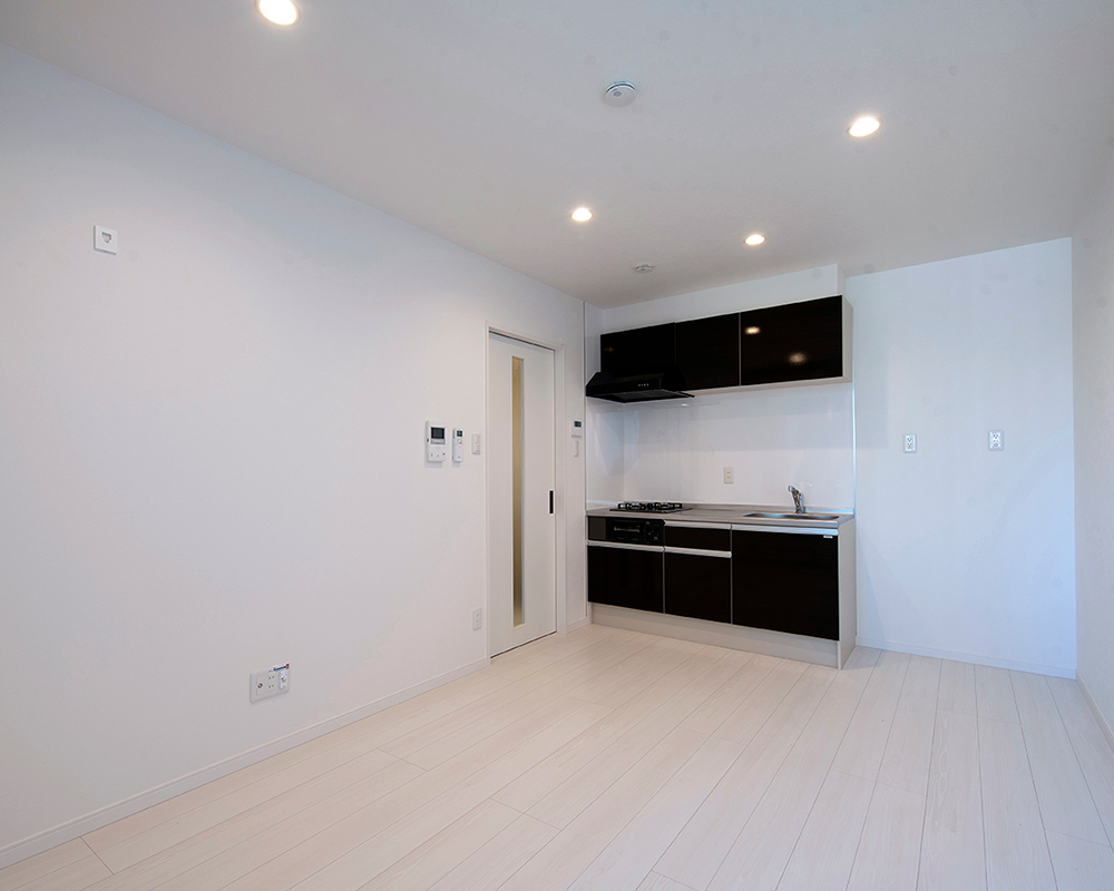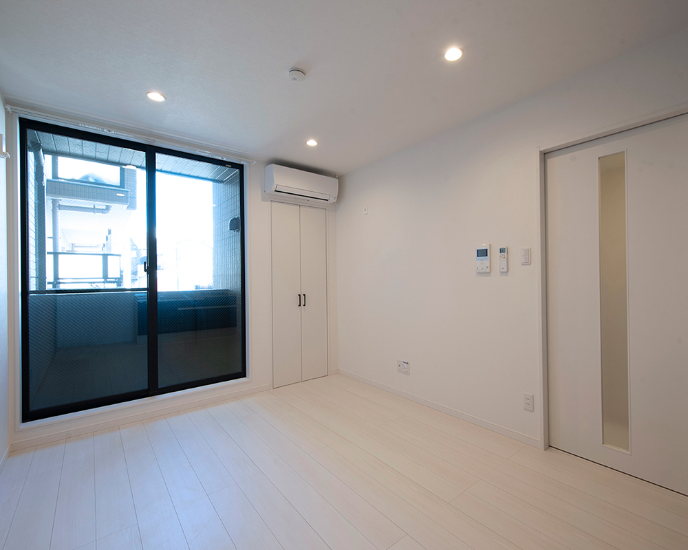 メインスペースと水廻りの動線を完全にわけた1Rの物件。