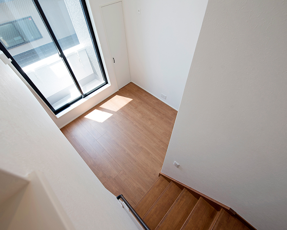 キッチンや洗面台、お風呂などのすべての水廻りを上に配置することで急な来客にも水廻りが見えづらい間取りになっています。