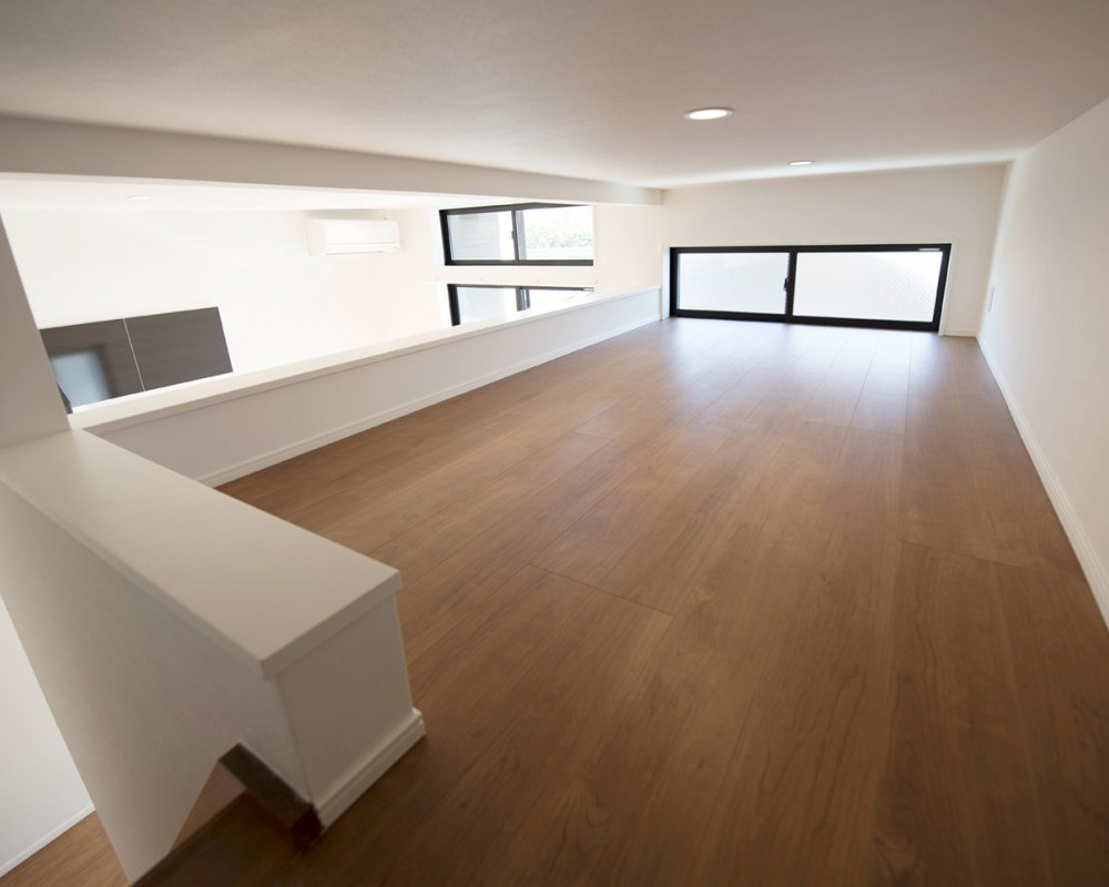 洋室とキッチンがロフトの下がり天井により空間が緩やかに区分されています。ゆったりとした水回りが住みよいお部屋です。