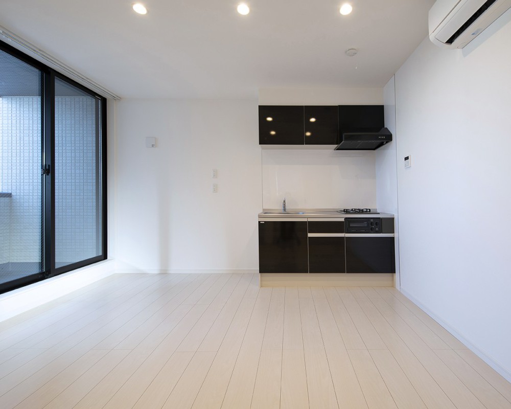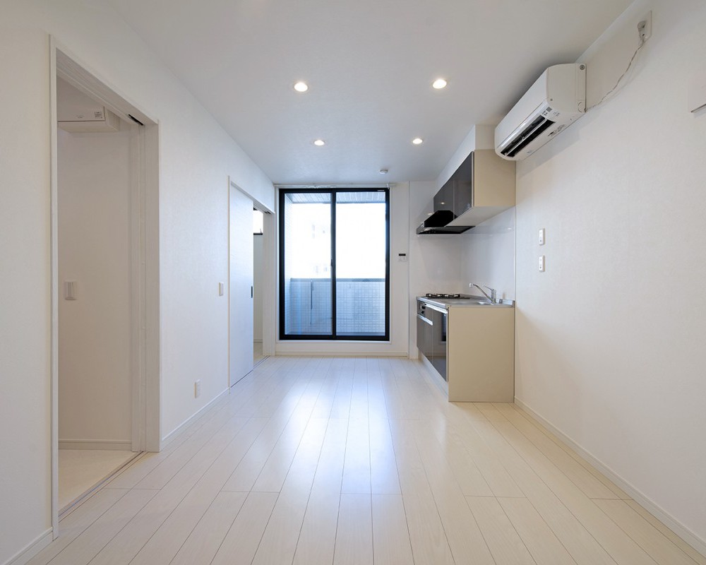 北側の部屋のLDKは入口から開口部へ視線が抜けることで奥行が増し、8帖でも広さを感じられるプランです。