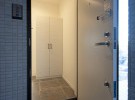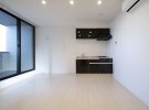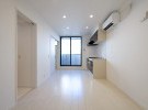 間口が狭く細長い敷地ながらゆったりとした水回りも確保した1LDKの居室を実現。