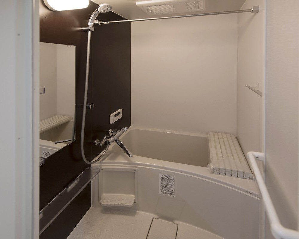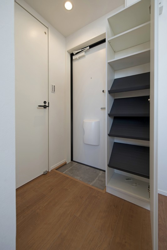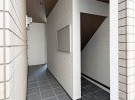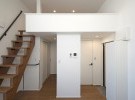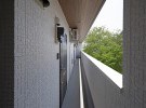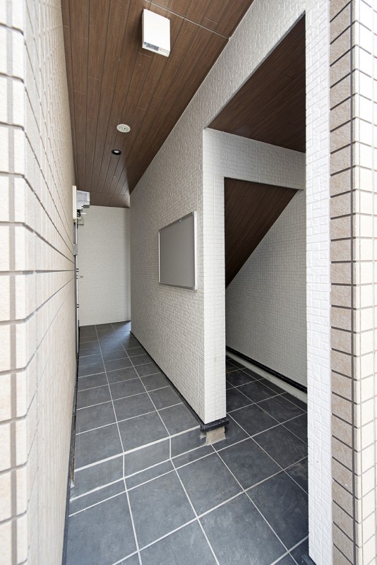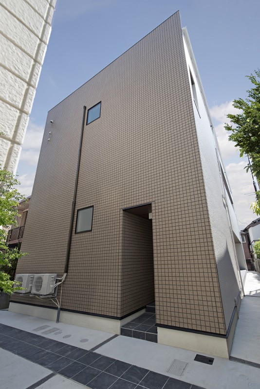 白い外壁に木質の軒天がさわやかな外観。旗竿の狭小地ですが、ロフト付きにすることで入居者を満足させる1K8戸をプランニングしました。