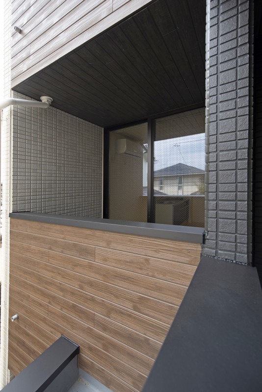 木質サイディングが白黒のベースに映えるおしゃれな外観。バルコニーの軒天までも木質に統一され、美観的なこだわりを感じられる物件です。