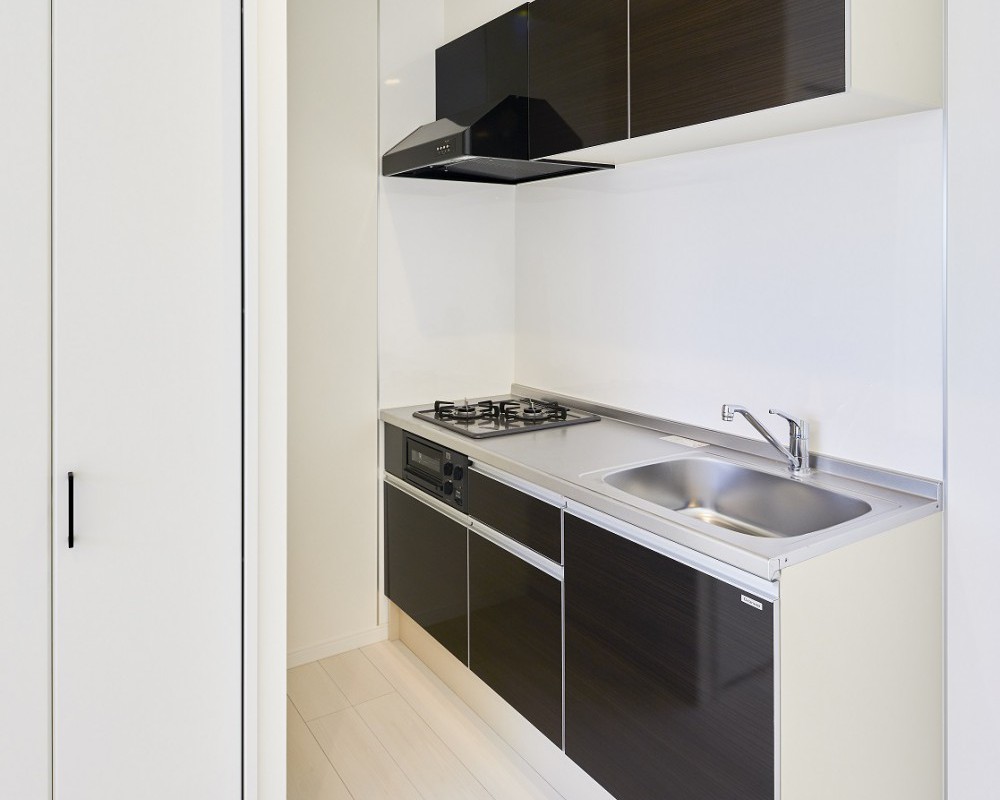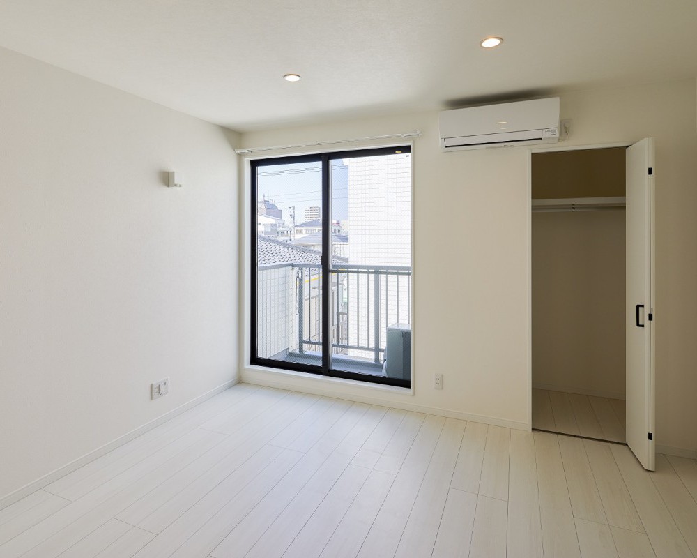 限られた土地面積を最大限に生かし、白で統一した内装が印象的な1K物件