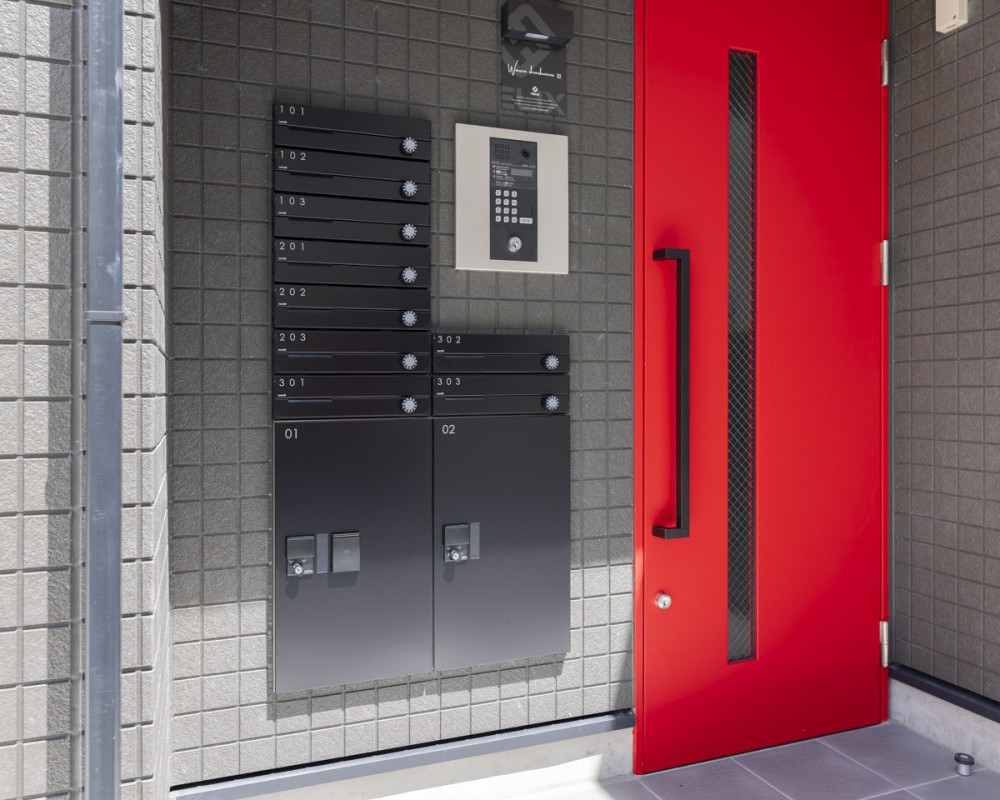 隣棟と対を成しデザイン性を相互に高めています。