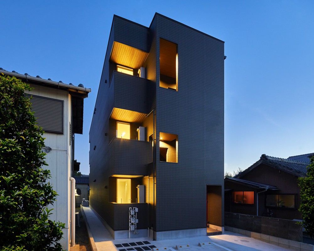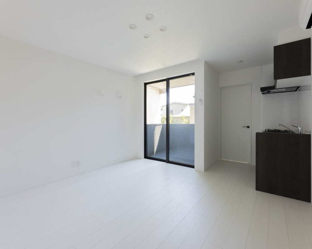 二部屋は南向きにバルコニーを、道路側の住戸は北向きバルコニーながらも、敷地内に十分な空きを作ることにより、広いリビングに採光を十分に取り入れられるようにプランニングしました。