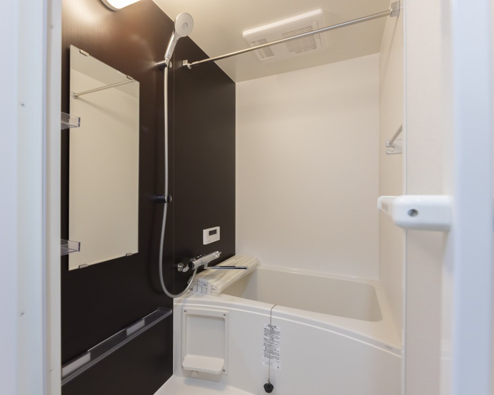 室内は十分な面積を確保できるように水回りを集約することで広いリビングを確保しています。