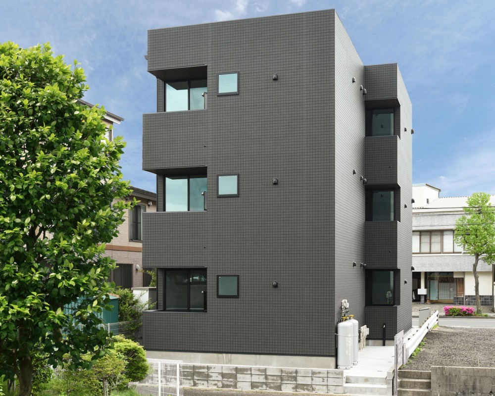 伏屋駅近辺に建てられた物件です。二面接道であるメリットを活かし敷地内目いっぱいに計画しました。