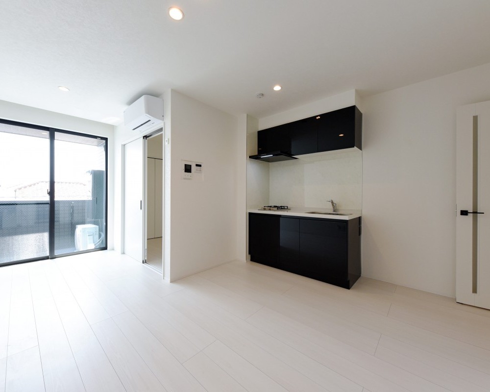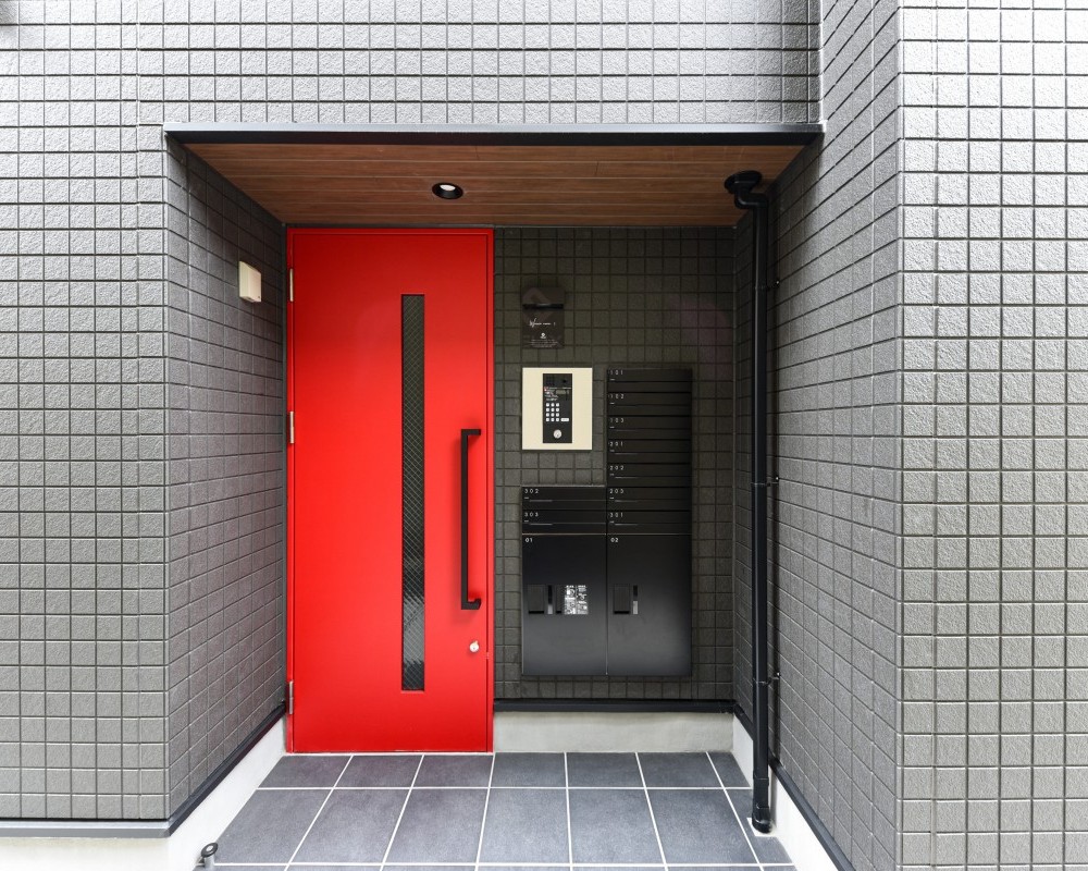 黒を基調とした外壁に加え、左右対称なファサードがスタイリッシュな外観を演出しています。