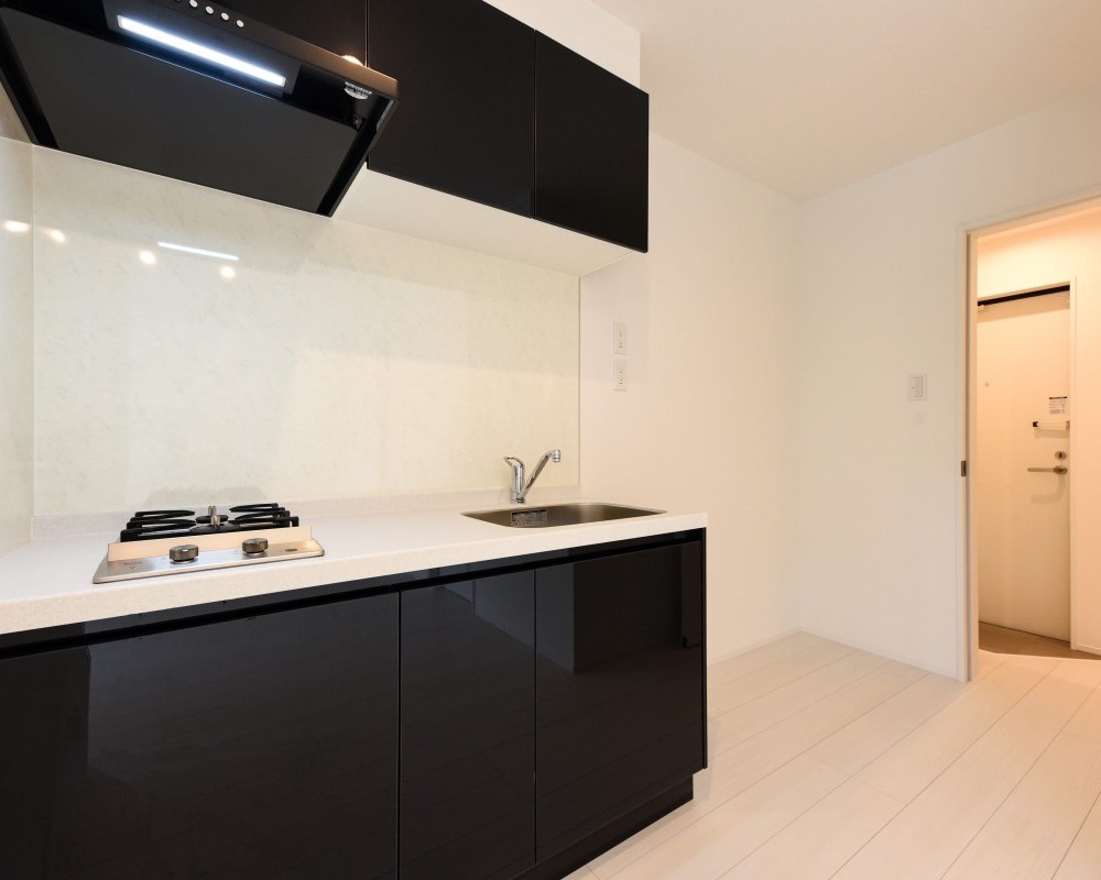 細長い住戸ながら水回りをコンパクトに収めることで、ストレスのない生活空間を確保しました。