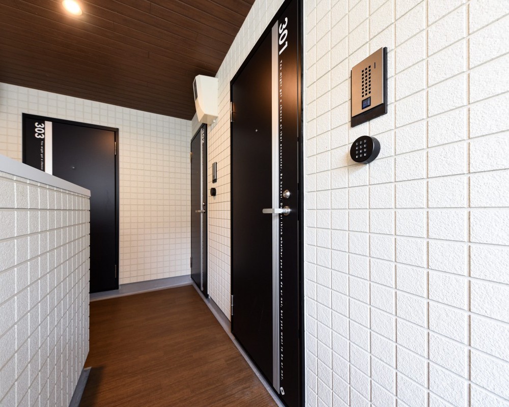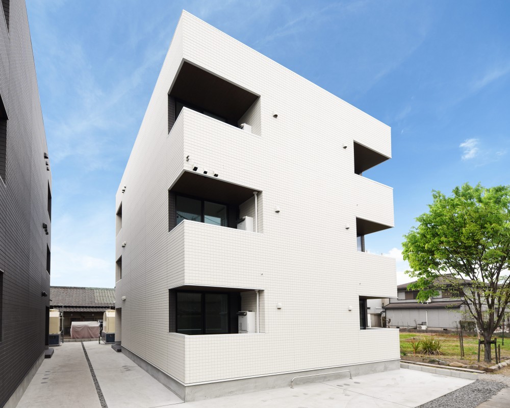 なお、黒い外壁のアパートが隣接しており、本物件の白い外壁とのコントラストは、とても美しいです。